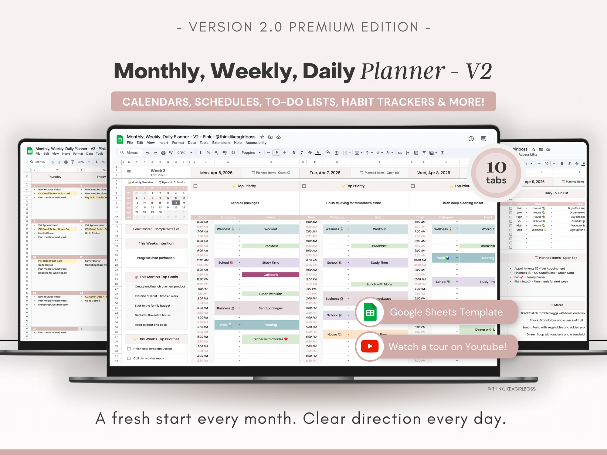 If you want a more complete monthly planning system, my Monthly Planner Spreadsheet includes a more advanced version of this calendar that connects directly to your weekly tabs, lets you assign categories, mark tasks as done, and highlights tasks by category.