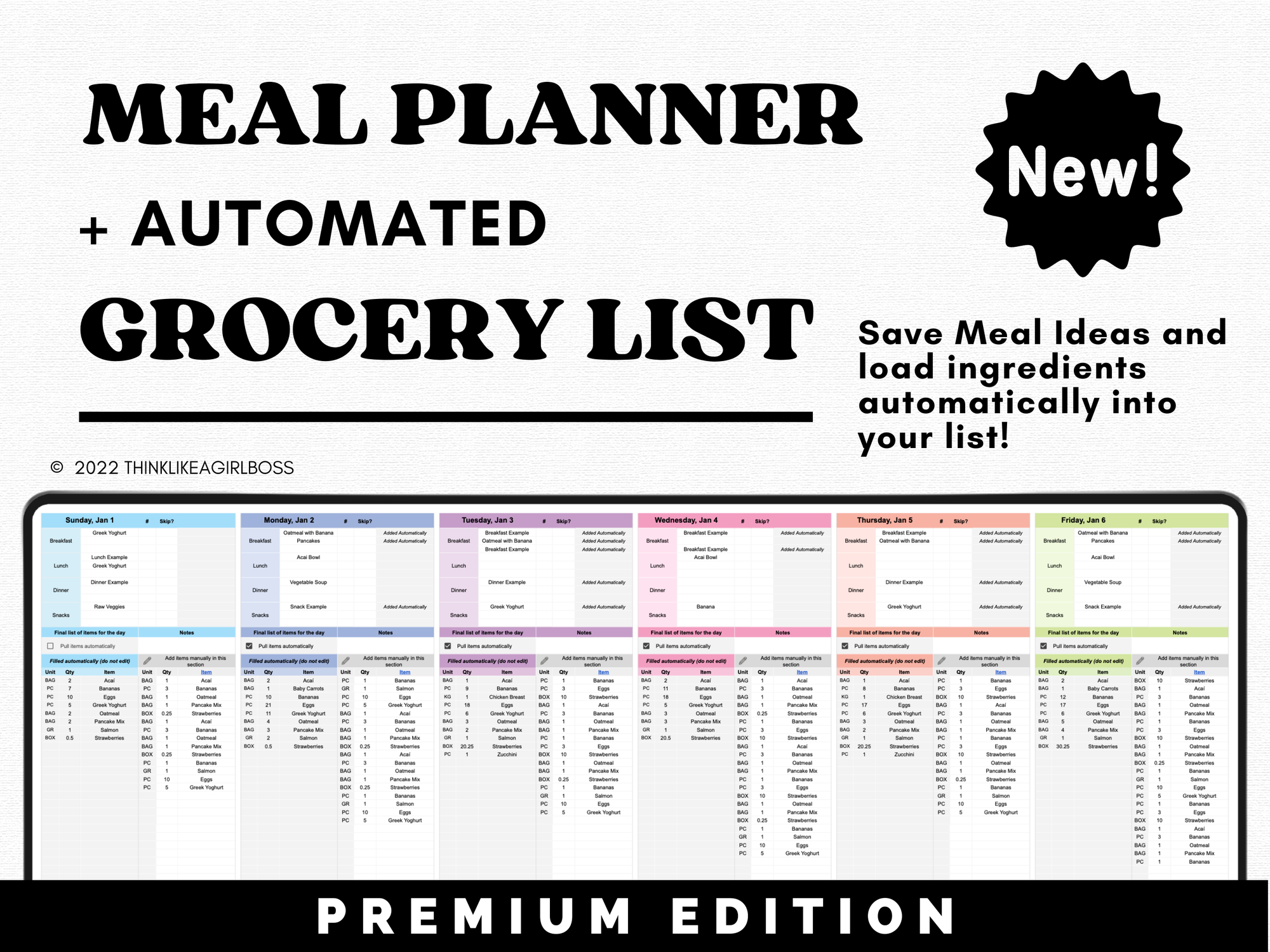Save meal ideas and load ingredients automatically into your grocery list! My spreadsheet solution to the number one thing that was stressing me out ... every single week.