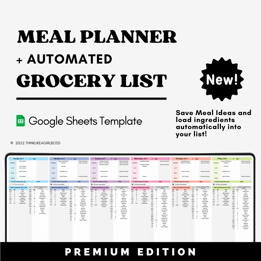 If you want something more advanced, you can check out my Meal Planner and Automated Grocery List Builder.